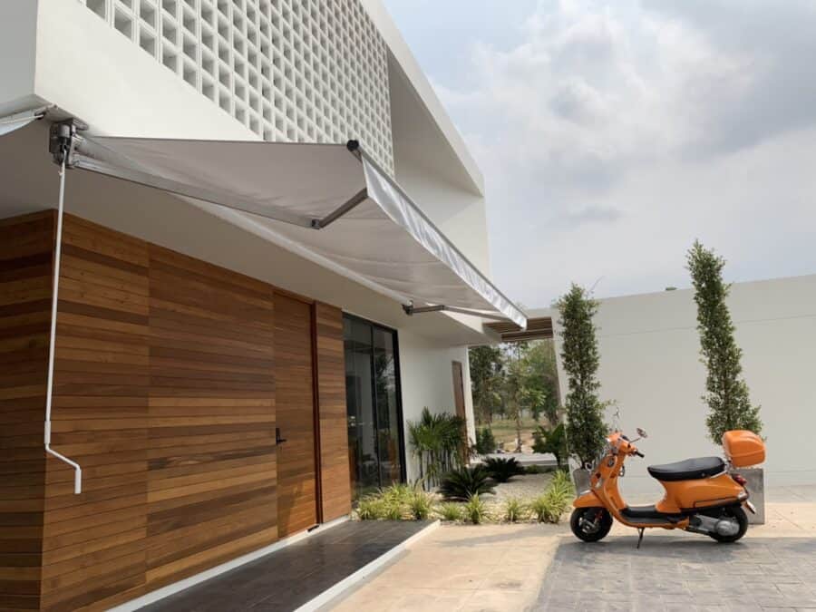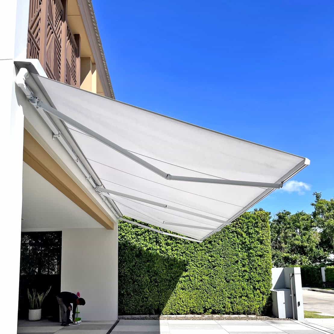 - เป็นวัสดุผ้าที่ดีที่สุด สำหรับ กันสาดพับเก็บได้